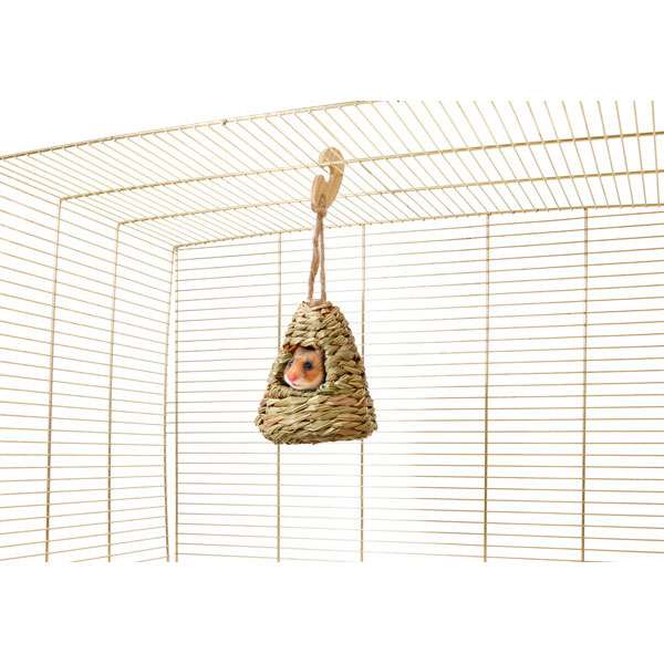 Dieses Grasnest in Form eines Iglus eignet sich ideal als Schlafhaus oder als Spielzeug zum Befüllen mit Heu, Kräutern oder anderen Snacks. Das Nest ist mit einem Seil und einem Haken aus Holz versehen, so dass es entweder ins Käfiggitter eingehangen oder einfach auf den Käfigboden gelegt werden kann. Das Grasnest ist 100 % natürlich und verdaulich.