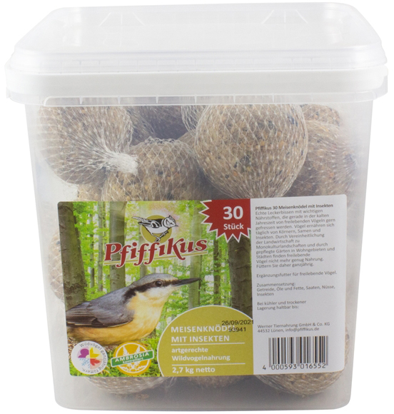 Echte Leckerbissen mit wichtigen Nährstoffen, die gerade in der kalten Jahreszeit von freilebenden Vö-geln gern gefressen werden. Vö-gel ernähren sich täglich von Kö-rnern, Samen, und Insekten. Duch Vereinheitlichung der Landwirtschaft zu Monokulturlandschaften und durch gepflegte Gärten in Wohngebieten und Städten finden freilebende Vö-gel nicht mehr genug Nahrung.