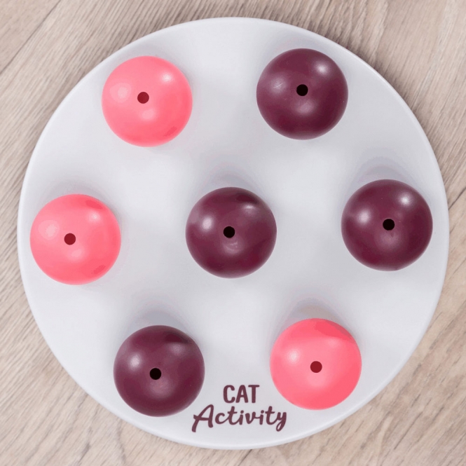 Das Solitär besteht aus einer Kunststoffplatte mit 7 Abdeckkugeln, unter denen kleine Leckerlies versteckt werden. Mit ein bisschen Pfoten-Geschick gelingt es Ihrer Katze, die Kugeln wegzupföteln, um an die darunter liegende Belohnung zu gelangen.