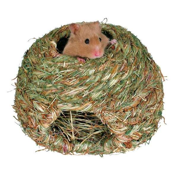 Dieses Nest besteht aus 100% Gras welches um ein Drahtseil gewickelt wurde. So bleibt es stabil und sicher. Es bietet Ihrem Nager eine natürliche Umgebung, die als Spielplatz, Schlafplatz oder als Brutplatz genutzt werden kann.