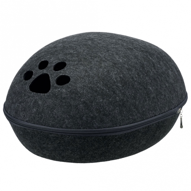 Die Kuschelhöhle Liva besteht aus formstabilem Filz (Polyester), welches isolierend und schmutzabweisend wirkt.