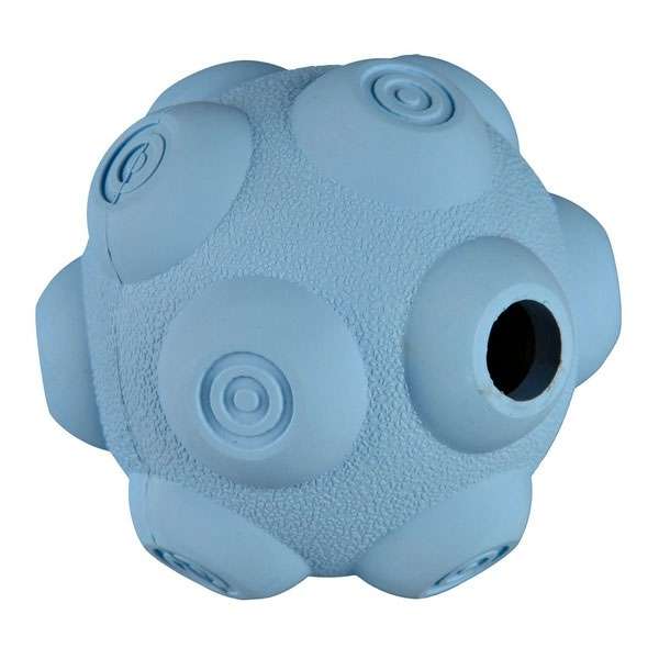 Die Leckerbissen, mit denen der Ball befüllt werden kann, werden einfach durch das Loch in den Ball hinein gesteckt. Im Inneren des Balles befindet sich eine Art integriertes sternförmiges Labyrinth, welches für ein extra langes Spielvergnügen die Leckerliausgabe verlangsamt. Durch das Naturgummi rollt der Ball sehr leise und durch die Noppenform des Balles springt er ungleichmäßig, was besonderen Spielspaß mit sich bringt.