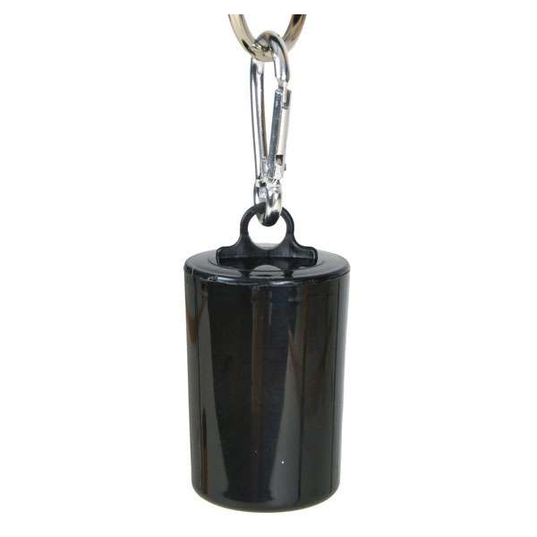 Der Beutelspender aus stabilem Kunststoff verfügt über eine seitliche Öffnung, durch die die Kotbeutel ganz einfach herausgezogen werden können. Der Karabinerhaken ermöglicht eine Befestigung an Leine oder Halsband bzw. Gürtelschlaufe des Halters.