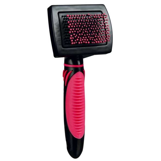 Die Softbürste eignet sich für Katzen mit Kurzhaar. Mit ihren extra weichen Kunststoffborsten mit Noppen ist sie das optimale Hilfsmittel zur schonenden Pflege des Deckhaars und der Unterwolle. Der Kunststoffgriff mit rutschfester Gummieinlage sorgt dabei für einen sicheren Halt in der Hand.