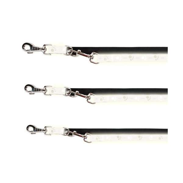 Diese Verlängerungsleine mit niedlichen Pfotenmotiven besteht aus Nylon und Kunststoff. Sie ist stark reflektierend und bringt Ihnen und Ihrem Tier so mehr Sicherheit im Straßenverkehr, gerade in den Herbst- und Wintermonaten. Die Leine mit einer Gesamtlänge von 2 m ist besonders belastbar und 3-fach verstellbar. Die Nylonunterseite ist schwarz.